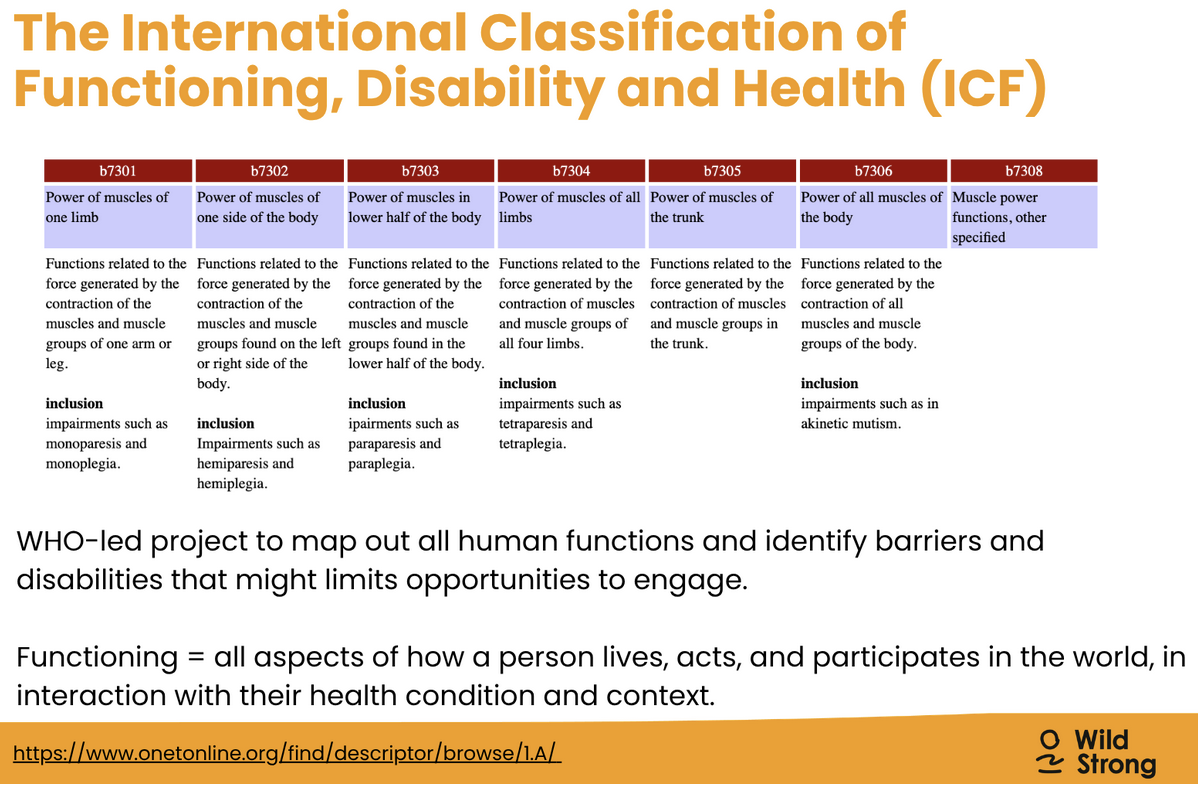 In the early 2000s, the WHO, inspired by Nussbaum's and Sen’s Capability Approach created the ICF model which situated human functionings in the context of their environment and reframed the way we look at disability. This model has also been adopted by occupational therapists.